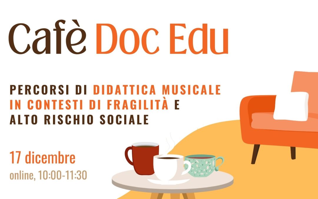 Il Cafè Doc Edu è un momento di incontro per specialisti del settore di pedagogia artistica e educativa nei progetti sociali, siano essi soci della cooperativa Doc Educational, o ospiti esterni. Lo scopo è quello di far conoscere i meravigliosi progetti a cui i talentuosi artisti e insegnanti si dedicano, con la speranza che lo scambio di contatti ed esperienze possa far poi nascere ulteriori contaminazioni, collaborazioni, cooperazioni lavorative ed artistiche, nuovi progetti e interventi, rilanciando il flusso creativo.